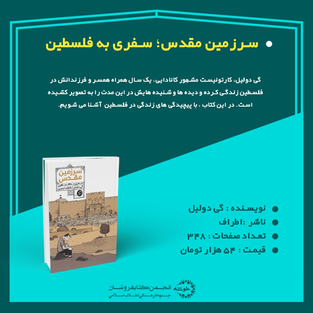 گی دولیل، کارتونیست مشهور کانادایی، یک سال همراه همسر و فرزندانش در فلسطین زندگی کرده و دیده ها و شنیده هایش در این مدت را به تصویر کشیده است. دولیل در این کتاب مثل سفرنامه های دیگرش، در پی ارائه تفسیر و توضیحی جامع درباره شرایط اجتماعی، سیاسی و فرهنگی کشور میزبانش نیست. روایت مصور او فقط گزارشی دقیق و پرجزئیات از مشاهدات شخصی درباره زندگی روزمره درون جامعه ملتهب فلسطین است که رسانه ها معمولاً به آن نمی پردازند.نویسنده و تصویرساز کتاب، از فرانسه و به خاطر مأموریت بشردوستانه همسرش وارد سرزمینی شده که حتی در تعریف مرز، ملیت، دولت، شهروند و … دچار اختلاف است. گی دولیل به سبک مشهور رسانه های غربی، دولت مستقر را اسرائیل می داند. برای همین مشاهدات روزمره اش را در همین چارچوب روایت می کند. او اگر چه تناقضات آشکاری را در زندگی انسانی فلسطین مشاهده می کند ولی تلاش می کند با شوخ طبعی و مقایسه سطحی حوادث، خود را بی طرف نگه دارد.