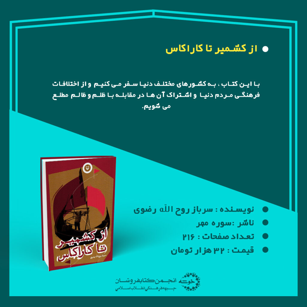 سفرنامه «از کشمیر تا کاراکاس» نوشته سرباز روح الله رضوی علی رغم تمام ساختارهای سفرنامه ای از یک ویژگی منحصر به فرد برخوردار است این سفرنامه از آن دست کتاب ها است که از سویی شیفتگان سفرنامه ها را جذب خود میکند و هم آنکه در دل خود حرف های بسیار جدی و عمیقی را برای مخاطبان روایت میکند.